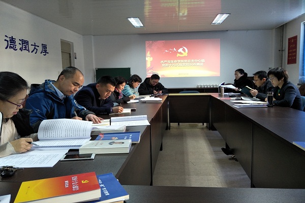 12月12日,探花论坛 党总支理论学习中心组在学院会议室开展十九大精神第四次集中学习。学院党总支理论学习中心组成员、各党支部书记参加学习,学院党总支书记邱金英主持会议。