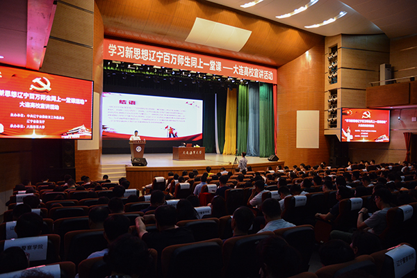 6月6日下午,探花论坛 本科生党支部以主题党日的形式参加了由中共辽宁省委高校教育工作委员会主办、大连海事大学承办的“学习新思想辽宁百万师生同上一堂课——大连高校宣讲活动”。本次活动由学院党总支副书记刚健带队,学院师生党员、发展对象代表参与此次党日活动。