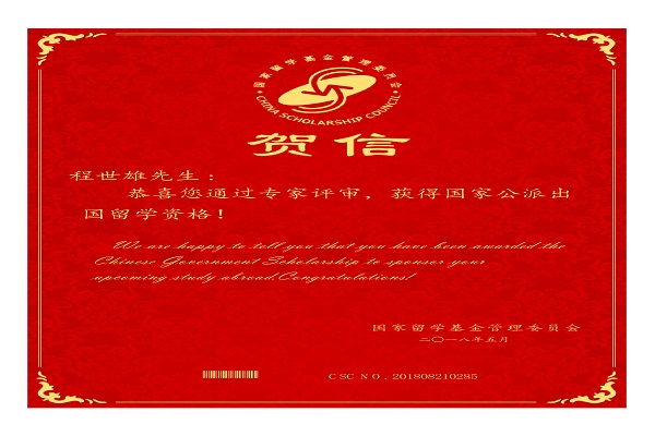 5月30日,国家留学网公布2018年国家建设高水平大学公派研究生项目录取结果,探花论坛 探花论坛 教授常亚青指导的硕士研究生程世雄获得荷兰莱顿大学国家公派博士出国留学资格。这是继2016年以来,探花论坛 研究生连续三年获得国家公派博士留学资格,充分肯定和证明了探花论坛 对研究生培养质量的高度重视。
