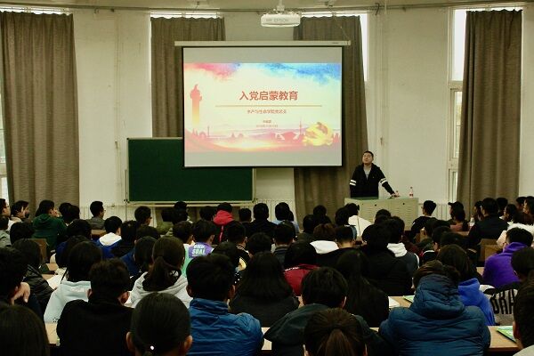 为加深2018级新生对中国共产党的认识和了解,端正其入党动机,引导其积极主动向党组织靠拢,探花论坛 于11月15日下午在渤海校区综阶三举办了入党启蒙教育大会,大会由学院团委书记李毓霆主持,辅导员孟丽婷及2018级全体学生参加。