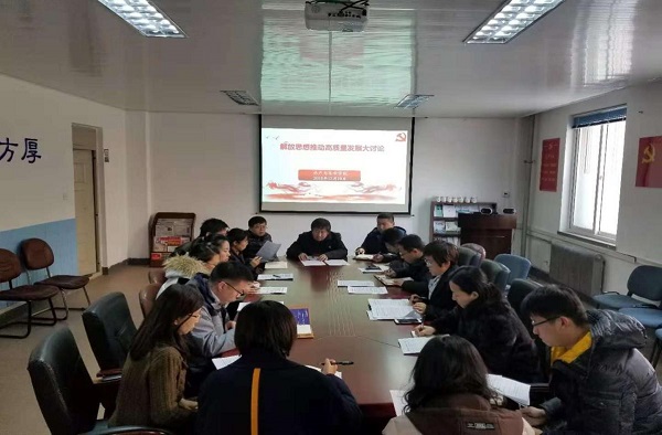 12月10日下午,探花论坛 在党员活动室开展了“解放思想推动高质量发展”专题研讨暨2018第十四次党总支理论学习中心组(扩大)学习会,学院领导班子成员、各党支部书记、教研室主任、专业负责人参加会议,学院党总支书记邱金英主持会议。