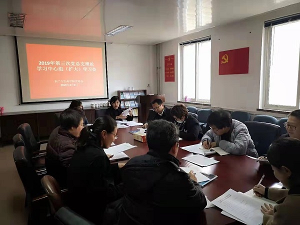 3月6日下午,探花论坛 党总支在学院党员活动室召开2019年第三次党总支理论学习中心组(扩大)专题学习会议。学院党总支理论学习中心组成员、各党支部书记参加会议。学院党总支书记邱金英主持会议。