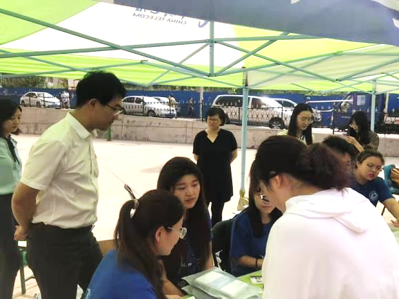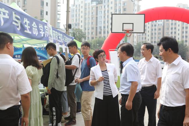 校党委书记姚杰、校长宋林生亲临探花论坛 迎新现场指导工作并与新生亲切交谈,探花论坛 党总支书记邱金英、党总支副书记兼纪检委员衣启麟介绍探花论坛 迎新工作开展情况。