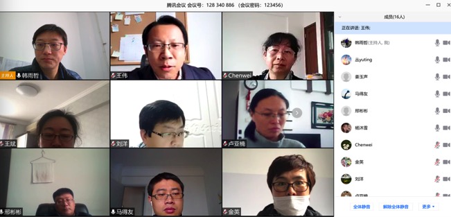 韩雨哲通报了第一周学院线上教学运行情况并对近期教学重点工作进行安排。邱金英就近期疫情防控工作提出了总体要求。最后,王伟总结讲话,提出了对疫情期间教学工作的要求和期望,要求广大教师提高认识,坚持不懈,稳步推进各项工作,在这场抗疫战争中贡献自己的力量。