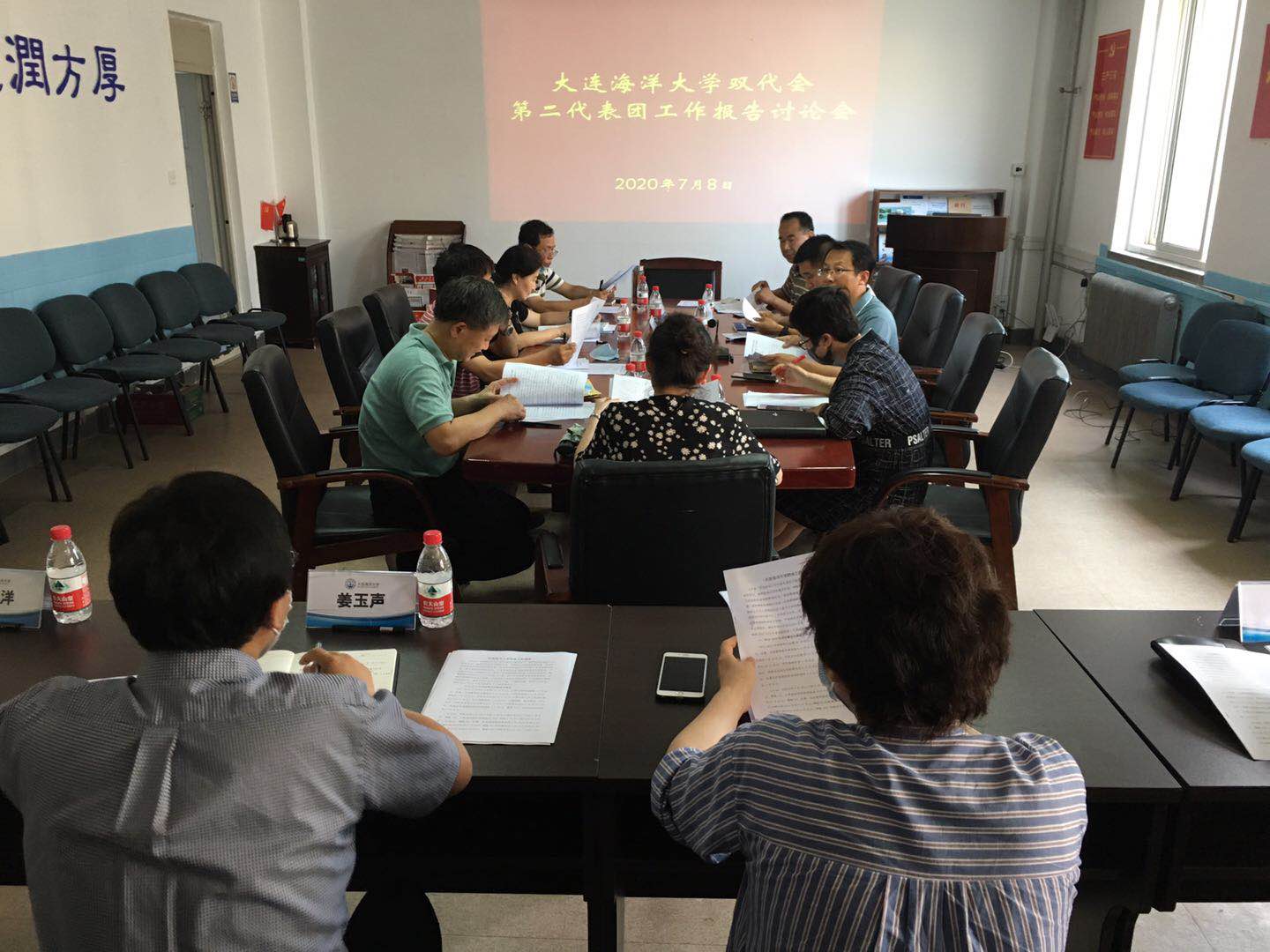 7月8日下午,大连海洋大学“双代会”第二代表团在探花论坛 会议室召开大连海洋大学“双代会”工作报告讨论会,第二代表团全体代表参加,会议由团长王伟主持。