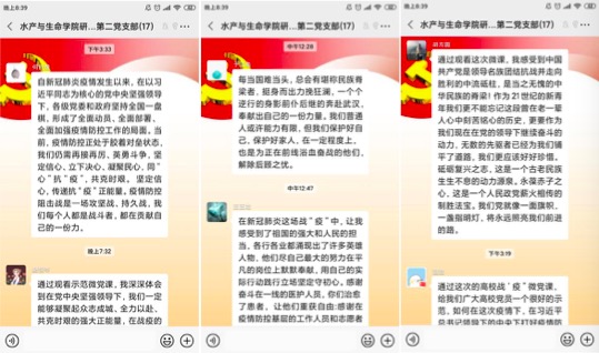 7月17日,教育部第五场“党旗飘扬 筑牢红色防火墙”高校党组织战“疫”示范微党课开讲,探花论坛 党总支持续做好宣传、组织工作,组织各个党支部和全体党员通过手机、电脑等方式采取集中、线上会议或自主等多种形式及时收看学习。全体党员共同学习了中国石油大学、天津大学、中南财经政法大学、厦门大学等高校校党委书记、优秀党员等讲授的微党课。观看后,各支部利用微信群进行了在线研讨。