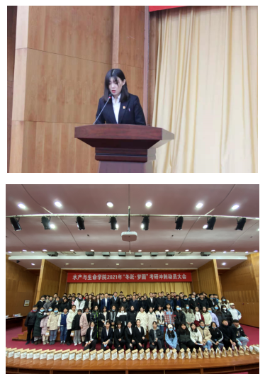 会议伊始,院长刘鹰对考研学生进行冲刺动员讲话,他从认清考研形势,坚定必胜信念、明确奋斗目标,顽强拼搏进取、发挥自身优势,全力以赴备战几方面深入展开阐述并预祝同学们取得优异成绩、考取心仪院校。2021年考研学生代表王悦晗在发言中表示,一定会竭尽全力,以最好的状态迎接考试,不辜负自己的付出与学院的培养,同时呼吁同学们在这最后的关头,调整好自己的心态,争取在最后拿出自己最饱满的精神、最好的状态去迎战考研。