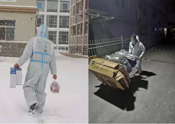 为了学生,即使没配齐防护服,也把热腾腾的饭菜送去学生寝室;