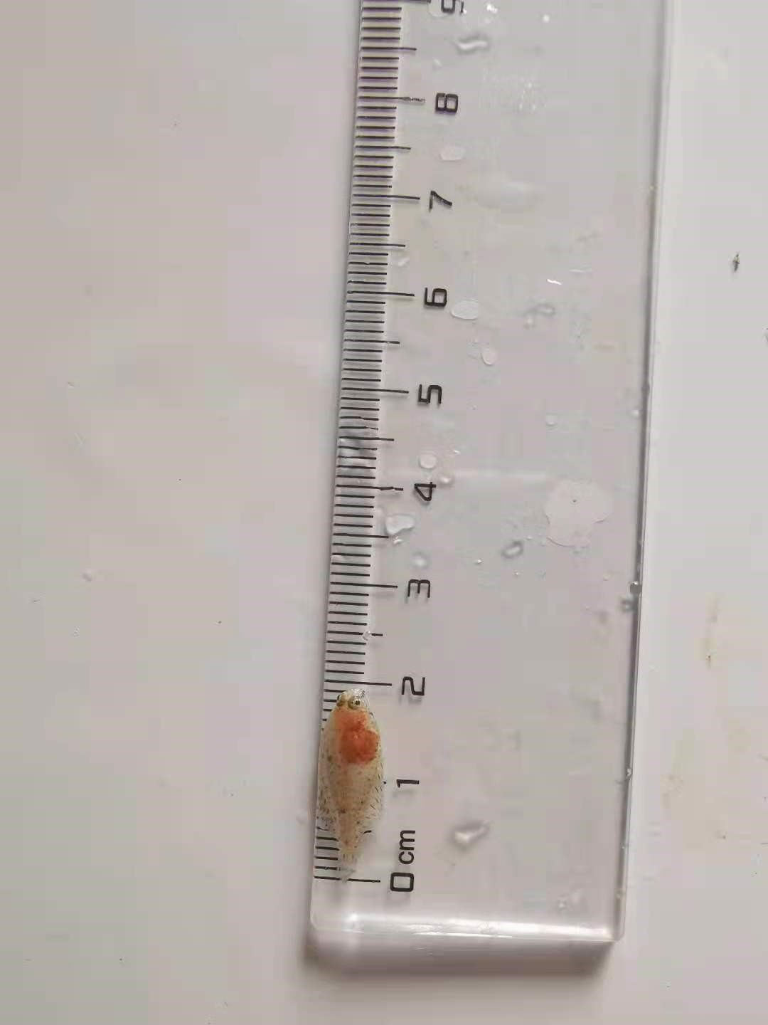 验收专家分别考察了大连天正实业有限公司以及大连颢霖水产有限公司的鱼苗养殖基地,现场查验了育苗的繁育设施,听取了工作人员的育苗以及饵料投喂等情况,对黄盖鲽鱼苗的数量进行了现场统计。同时还对黄盖鲽仔鱼的生长指标(体重和体长)进行了测定。本次共成功繁育黄盖鲽鱼苗110万尾,平均全长20.2mm,体重0.11g。一致认为该项目建设规范,育苗成效好,已达到项目预期的鱼苗规格与数量,通过专家验收。