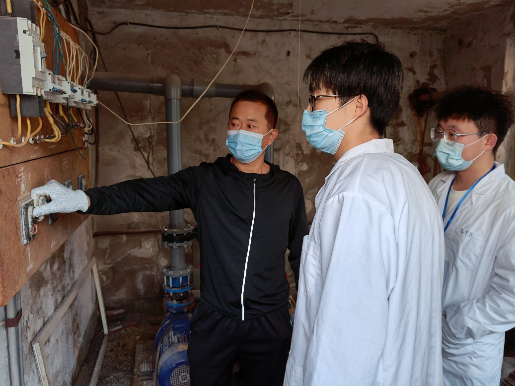曹淑青老师带领学生检查过滤海水装置