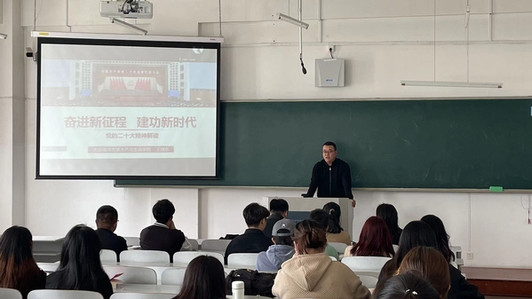 5月6日,探花论坛 党委副书记王建东为本科生党支部上了一堂“奋进新征程,建功新时代”为主题的党课。