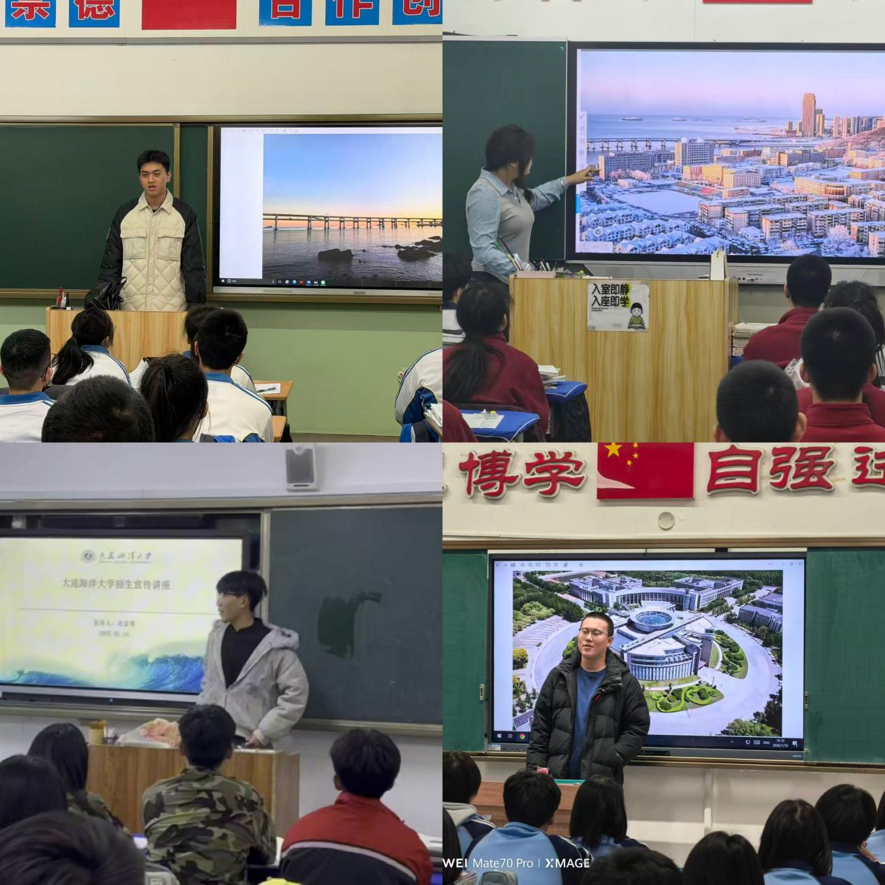 本次活动以“省内省外联动、学校社区共融”为主线开展,一是多名学生利用寒假返乡契机,走进省内外多所高中母校,包括大洼区高级中学、东港市第二中学、辽宁省朝阳市北票市高级中学、福建省龙岩市第四中学等省内外多所高中,通过举办专场分享会等形式向学弟学妹们介绍大连海洋大学的发展历程、办学实力、校园环境,并重点解读探花论坛 的优势学科、专业特色、科研平台及就业前景。