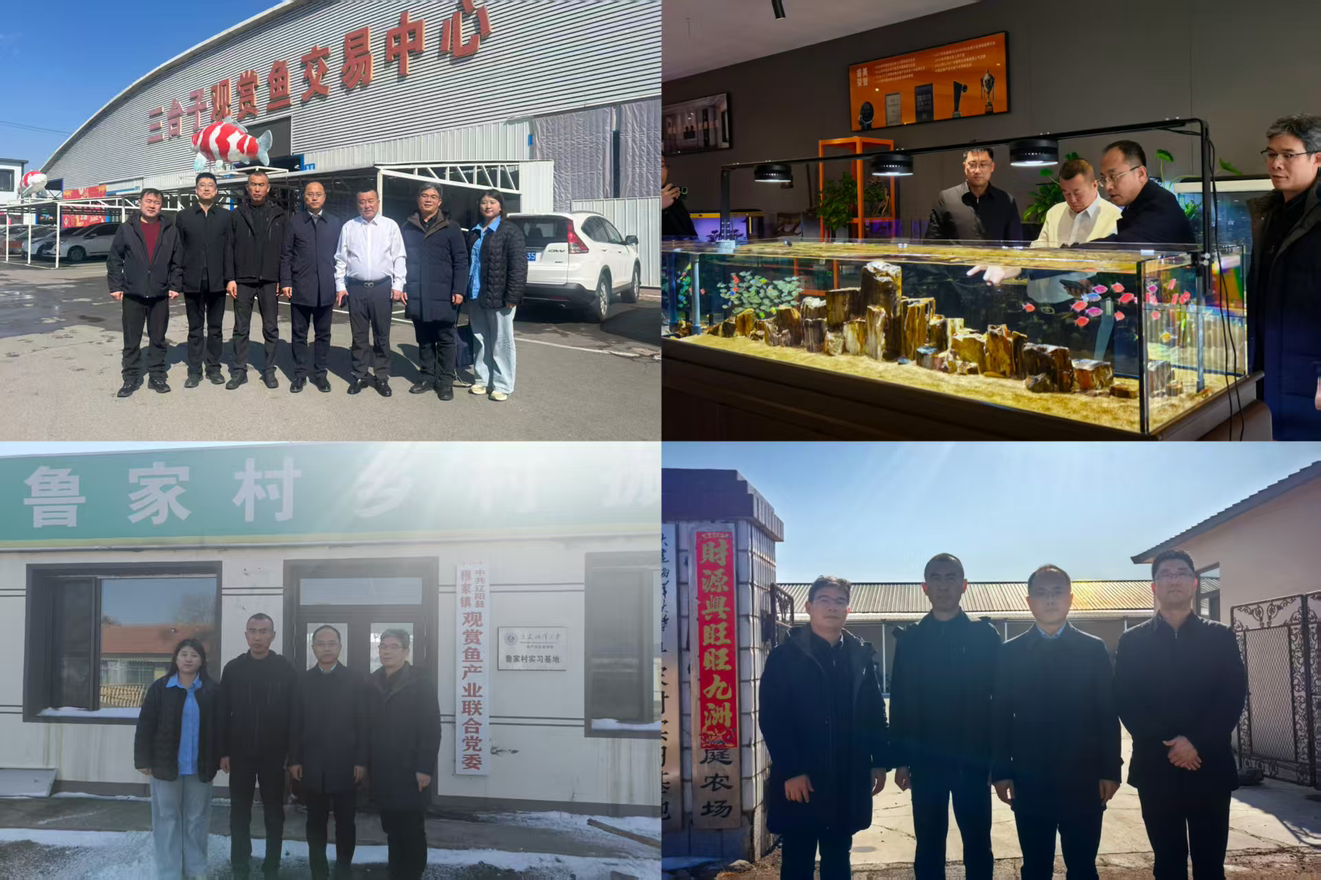 3月18日,探花论坛 党委书记刘宪杰、副书记王涛、副院长叶仕根、水生动物医学系副主任郭志新一行四人赴鞍山三台子观赏鱼交易中心开展访企拓岗暨党建共建交流活动。