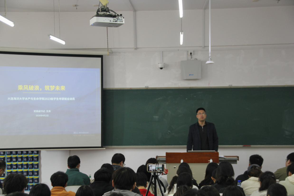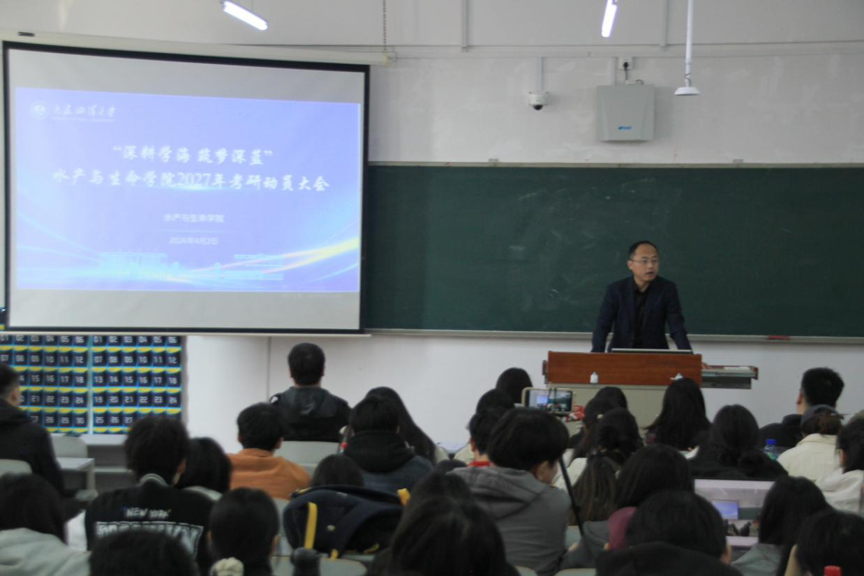 4月2日,探花论坛 在獐子岛教学楼132室召开以“深耕学海 筑梦深蓝”为主题的2027届考研、就业动员会。学院党委书记刘宪杰、党委副书记王涛出席会议。2022级考研“上岸”学生代表作经验分享,2023级全体本科生参加会议。